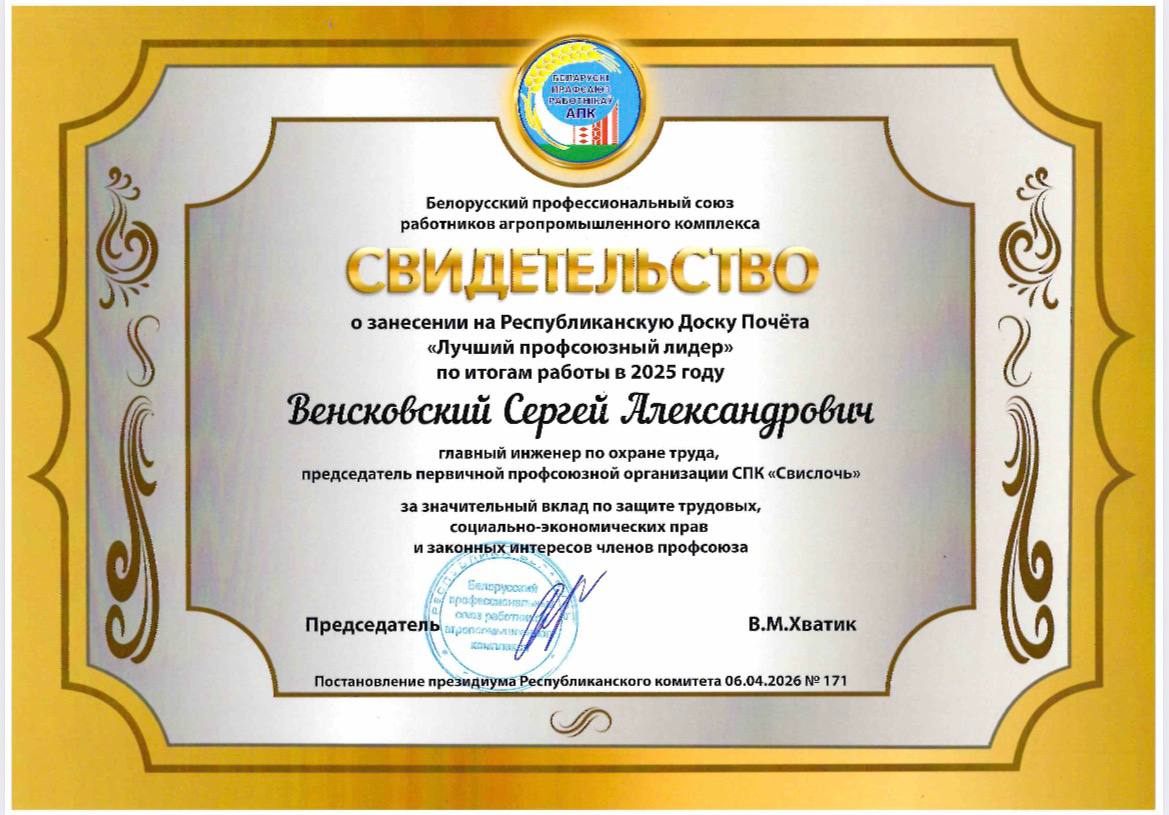 Искренние поздравления нашему профсоюзному лидеру - Венсковскому Сергею Александровичу.
