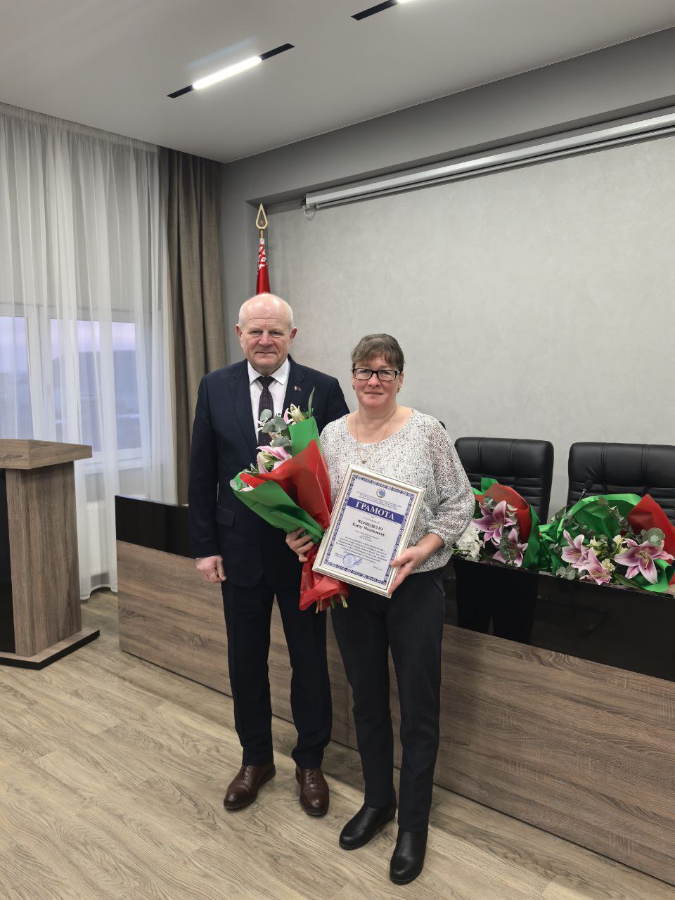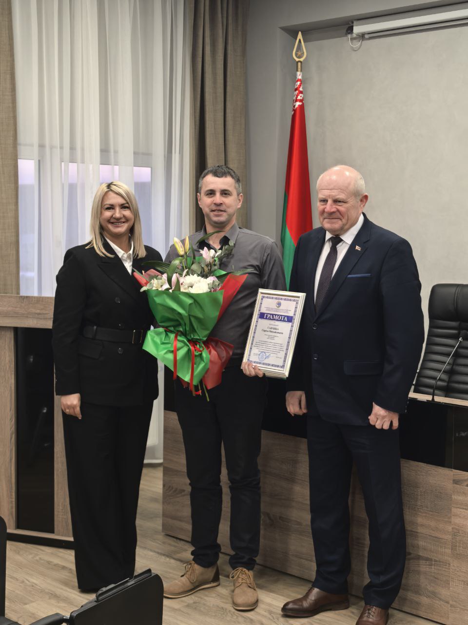 Сегодня председатель Гродненской областной профсоюзной организации Белорусского профессионального союза работников агропромышленного комплекса Михаил Ситько вместе с заместителем председателем Алесей Венско поздравили наших коллег из СПК «Свислочь», Гродненского района: