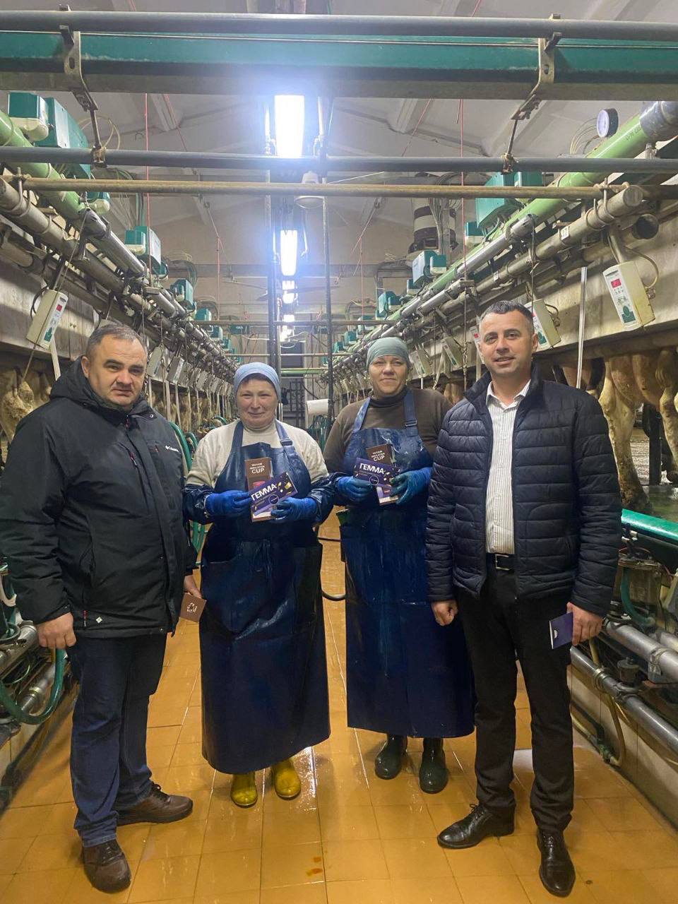 Председатель СПК «Свислочь» Сергей Михайлович Савчик и председатель профсоюзной организации кооператива Сергей Александрович Венсковский поздравили прекрасную часть нашего дружного коллектива с Днём матери!