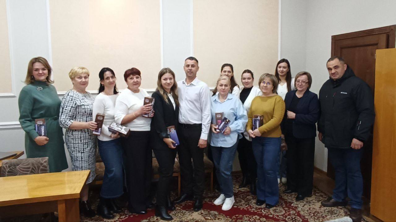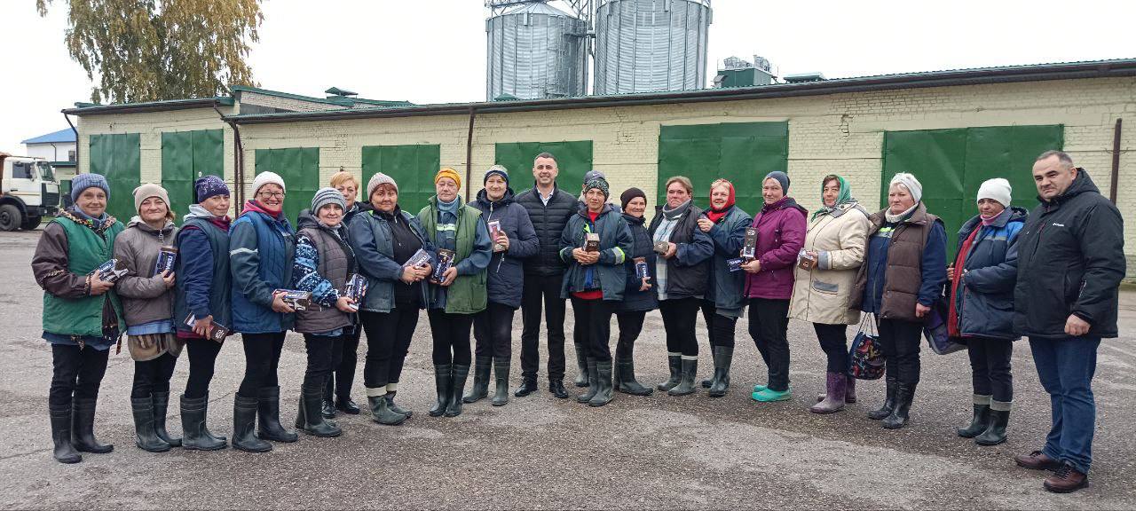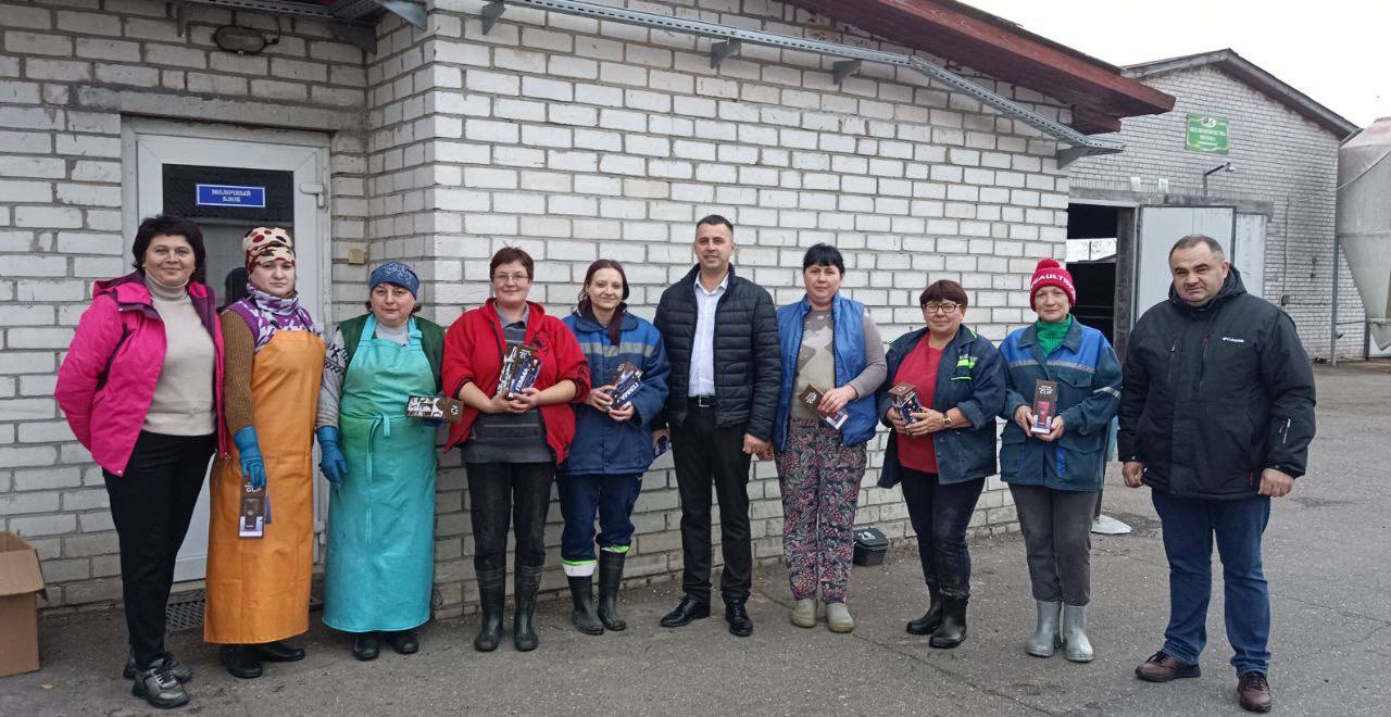 Председатель СПК «Свислочь» Сергей Михайлович Савчик и председатель профсоюзной организации кооператива Сергей Александрович Венсковский поздравили прекрасную часть нашего дружного коллектива с Днём матери!